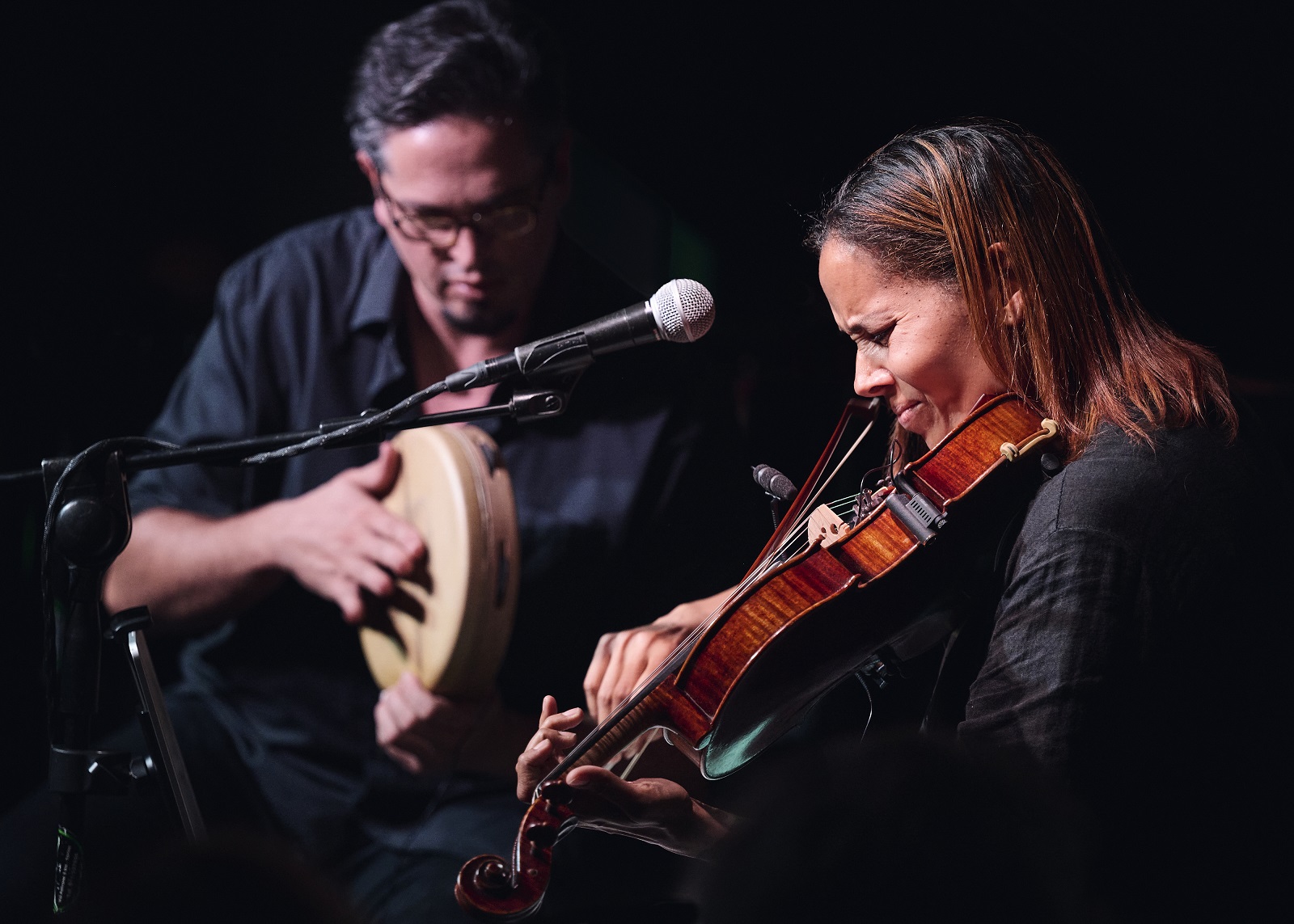 Rhiannon Giddens è una straordinaria musicista e cantante di musica popolare e tradizionale americana, suonata su violino e banjo fretless; Francesco Turrisi è un poliedrico pianista e percussionista italiano, esperto di jazz, musica antica e musica tradizionale del mediterraneo. Nel 2018, attraverso un incontro musicale casuale in Irlanda -dove entrambi risiedono stabilmente- Rhiannon e Francesco scoprono che i brani di banjo da minstrel del 19° secolo che Giddens padroneggia e i ritmi tradizionali del tamburello siciliano che Turrisi ha nel proprio DNA si combinano in maniera del tutto armoniosa, creando un’alchimia sorprendente. Questa la scintilla: nel 2019 Giddens e Turrisi pubblicano il loro primo album in duo, acclamato dalla critica: "There is no Other", di cui il singolo "I'm on my way" è nominato per un Grammy Award nel 2020. L’album è al contempo una condanna dell’'alterizzazione' e una celebrazione della diffusione delle idee, della connettività e dell'esperienza condivisa. Tracciando il movimento di strumenti, suoni e linguaggio musicale tra l'Africa, il mondo arabo, l'Europa e le Americhe, “There is no Other” illumina il fiorire che è possibile quando la cultura scorre liberamente tra i popoli e le terre. Il loro secondo album "They're calling me home" (2021) è nominato per ben due Grammy Awards nel 2022, aggiudicandosi quello nella categoria “Miglior Album Folk”. La rivista No Depression lo definisce “…un album quasi perfetto, il miglior lavoro della Giddens fino ad oggi." Registrato nell'arco di sei giorni nella prima fase della pandemia in un piccolo studio fuori Dublino, “They're Calling Me Home” riesce a fondere senza sforzo la musica dei loro paesi nativi e adottivi: America, Italia e Irlanda. L’album, che tratta anche del “richiamo a casa” metaforico della morte, viene descritto dalla rivista Uncut come “una mediazione estesa sull'esperienza da espatriato, con interpretazioni struggenti di inni".